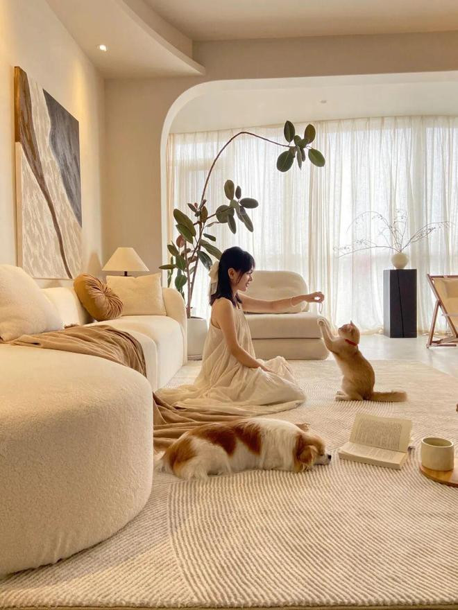 Tips:其实什么都不铺,反而可以让家看起来更加清爽利落。若一定要铺,就铺一块沙发巾。(可机洗地毯就是智商税)