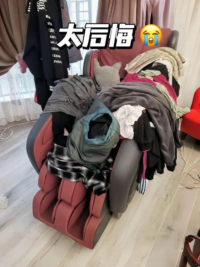 网友@三米子子子:跟风买了一台按摩椅,结果一点都不好用,按又按不到地方,按到的地方又太疼,现在已经完全沦为堆衣服的椅子了。